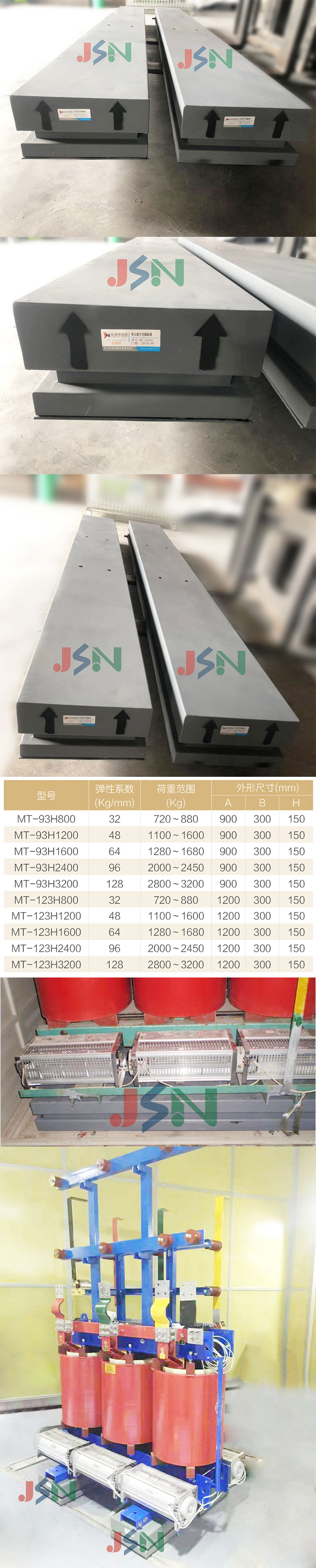 ◇產品特性: ●彈簧表面采用ED及烤漆處理,防銹能力極佳并通過ASTMB-117及8886鹽霧試驗測試 ●彈簧均經熱處理及應力消除,抗疲勞性能好。 ●彈簧直徑大于下壓至額定擾度高度的0.8倍,在彈簧壓縮最大下壓量大于額定擾度的50%。 ●內部使用地震防摯震裝置,安全性能高。 ●內部設計阻尼機構有效的避免共振現象。 ●全規格均采用抗沖擊耐腐蝕材料的外殼密閉組合。 ●彈簧的排列方式采用埃爾米特矩陣,加載后使彈簧在最佳的工作狀態,提高減振效率及使用壽命。 ●安裝方便,節省時間。主要用于變壓器減振降噪。