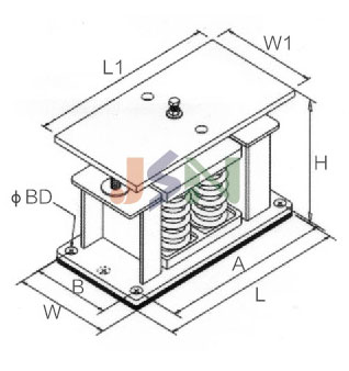 JA型彈簧減振器擾度25mm,在額定載荷下固有頻率3.2Hz,阻尼比為0.03,是積極、消除減振的理想產品。