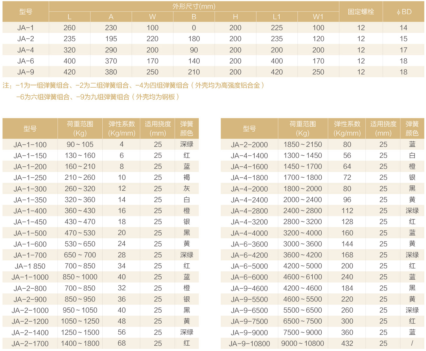 JA型彈簧減振器擾度25mm,在額定載荷下固有頻率3.2Hz,阻尼比為0.03,是積極、消除減振的理想產品。