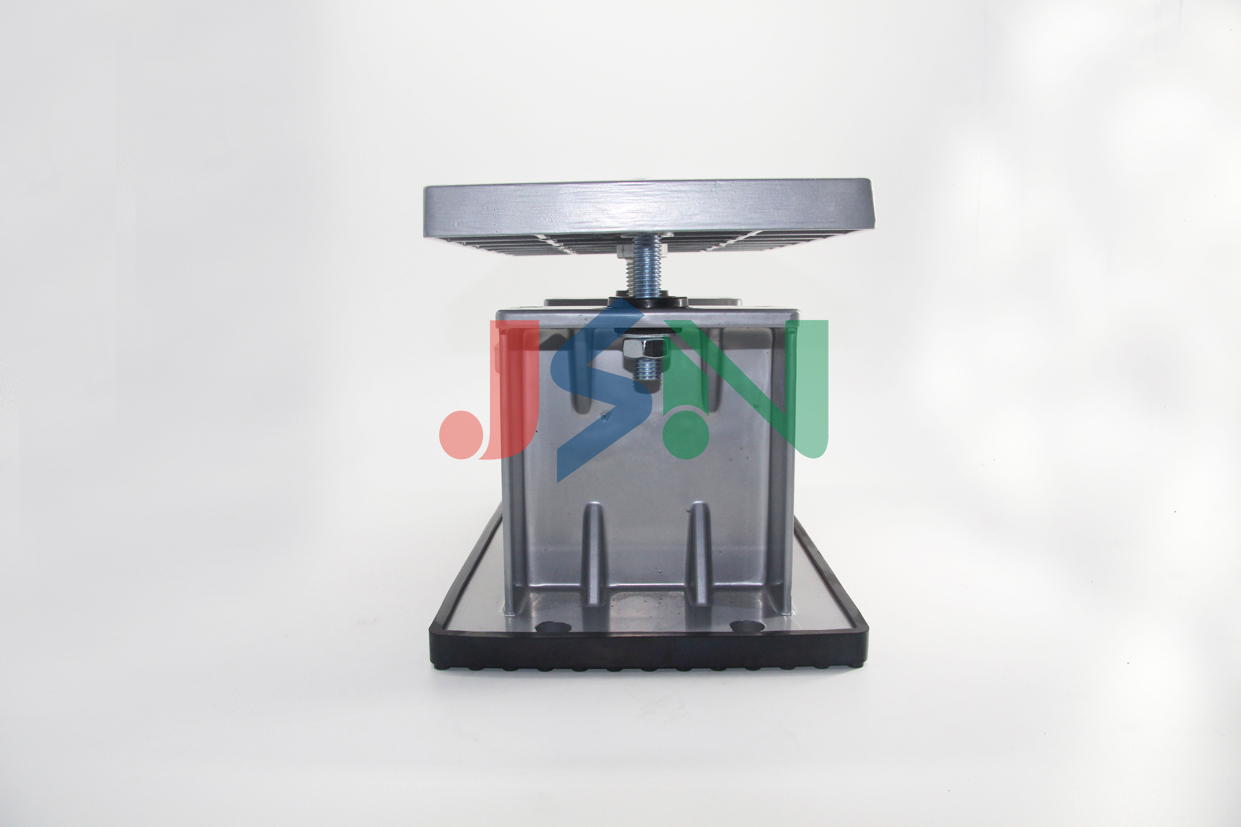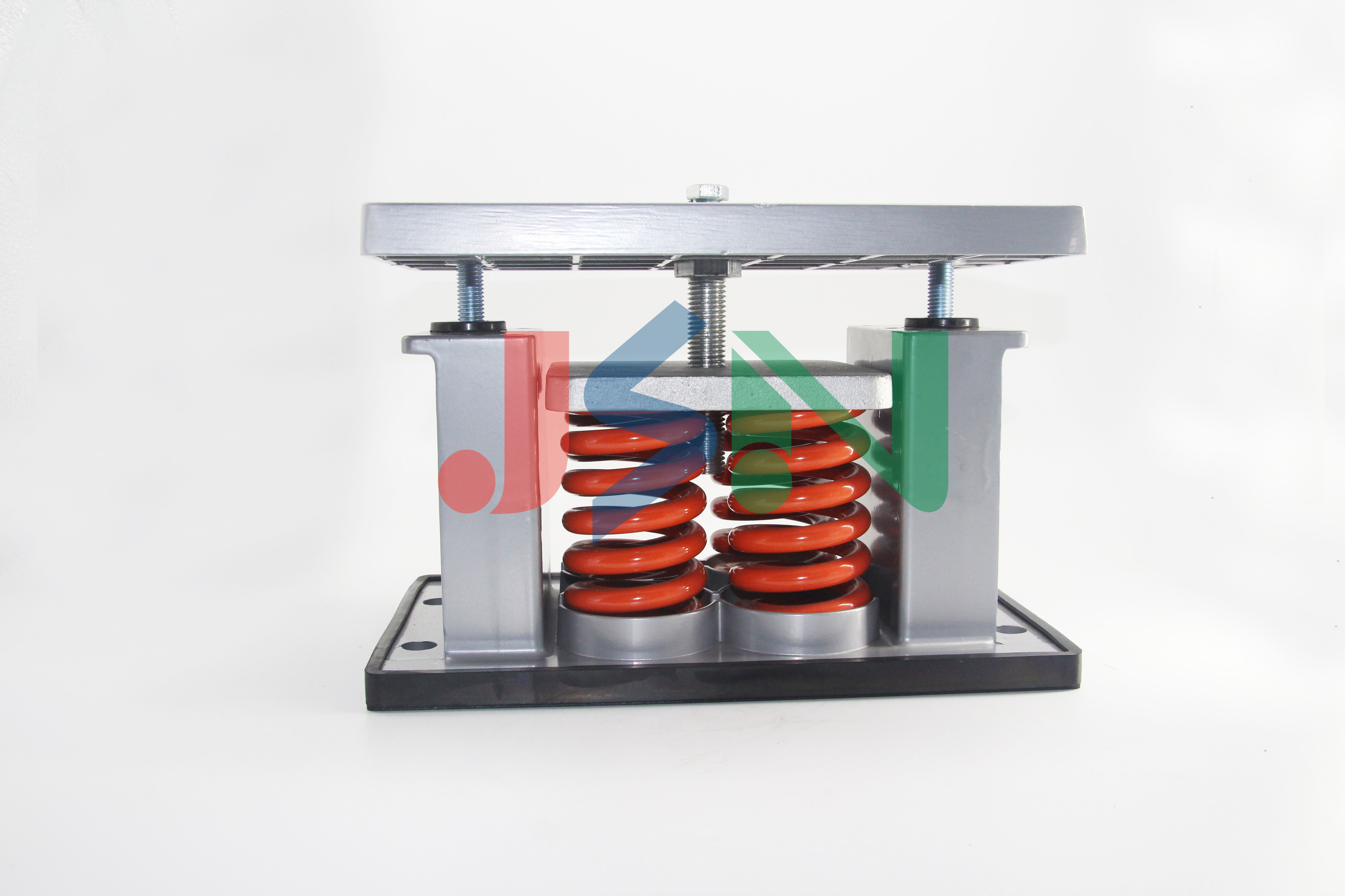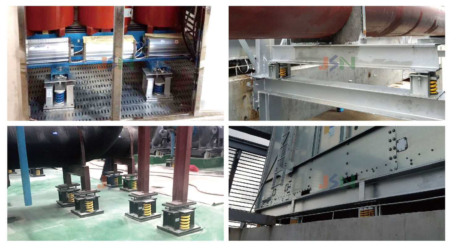 JAD型彈簧減振器是由高強度鋁合金外殼、彈簧及橡膠防滑墊組成。該產品為開敞式結構,具有靈活性大、穩定性好、固有頻率低、減振效果顯著等優點,安裝時可直接安放在設備底下,若動力設備擾力較大,可先調節重心,并將減振器底座固定孔用螺栓固定地基。